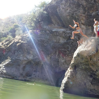 The Malibu Creek Rock Pool and Century Lake #hike is 5.1 mile round-trip #trail located near #Calabasas and is good for all skill levels. The trail is an easy walk down oak shaded paths. Just before reaching a bridge that crosses #Malibu #Creek, make a right on another wide trail. After a short distance, this trail turns to the right, but you should continue straight ahead on the unmarked but well-worn path to #Rock #Pool. The path follows the creek that flows out the bottom of Rock Pool, passing a popular climbing rock called Planet of the Apes Wall (because Planet of the Apes was filmed here). When you get to Rock Pool you'll see vertical walls of volcanic rock and a green pool. At certain times of the year the pool is deep enough to #cliff #jump.